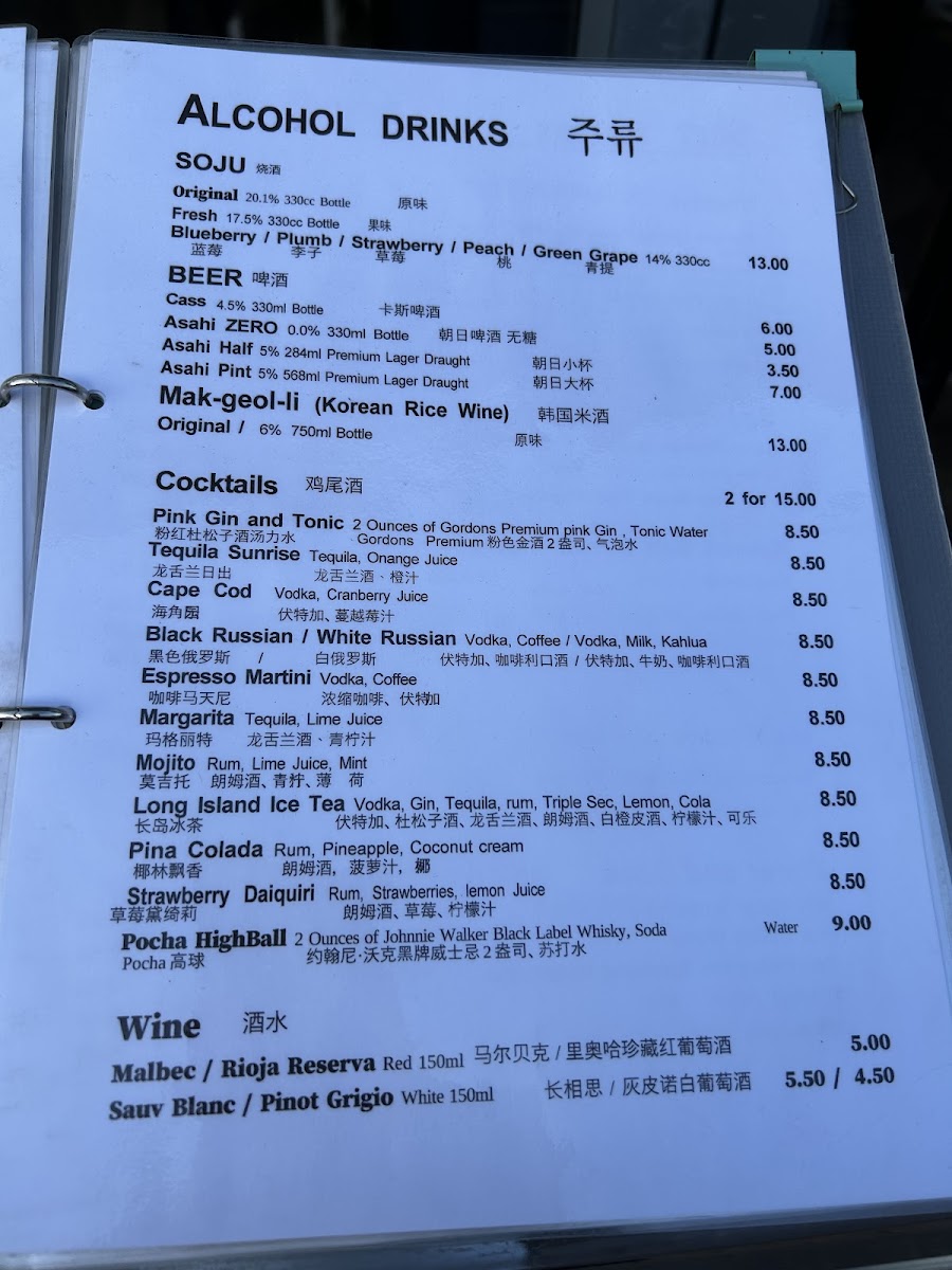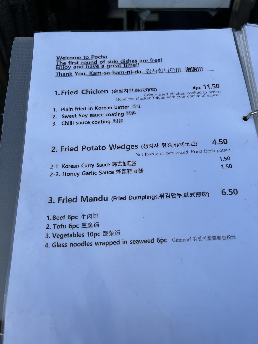 Pocha Korean Restaurant Menu